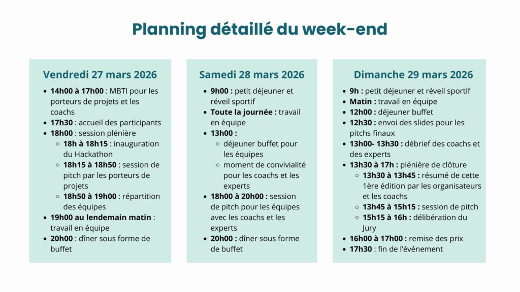 À partir de projets sélectionnés en amont, des équipes pluridisciplinaires travailleront ensemble pour faire avancer des idées innovantes, les challenger avec des experts et leur donner une nouvelle impulsion 🚀